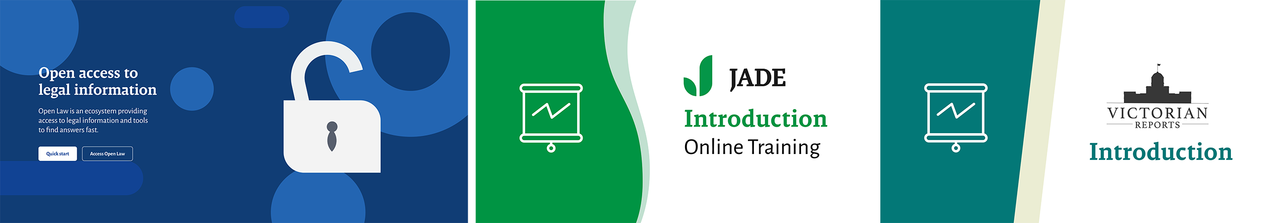 After the main JADE logo has been refreshed, I moved on to redesigning the logos for Open Law and Victorian Reports to have the same visual design language, while maintaining their previous colour schemes (for recognisability).