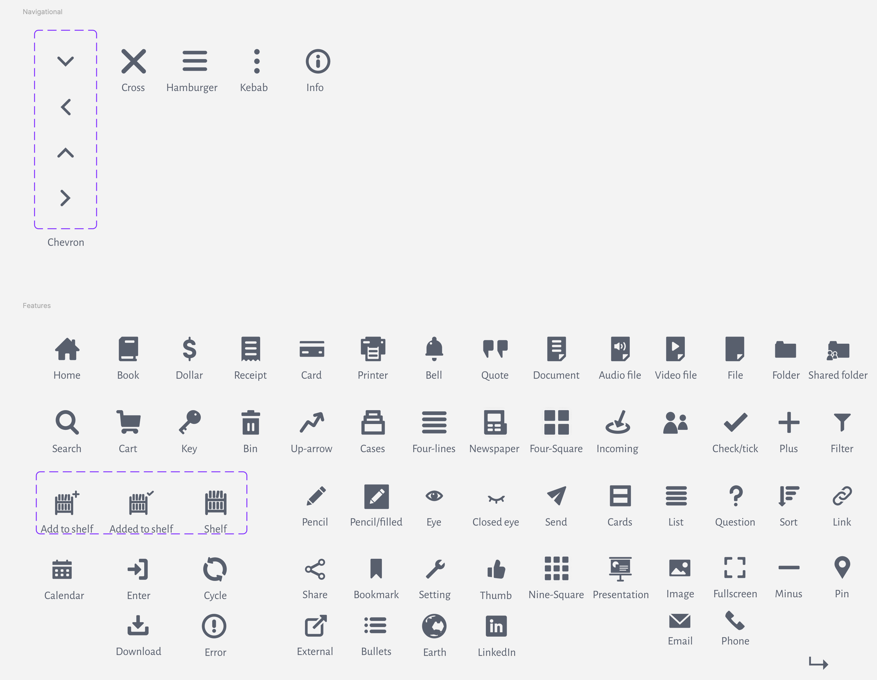 Some icons (such as the shelf) are unique to our offerings and have to be custom-made. Due to having icons that are unique to our offerings, an icon library is important for consistency.
