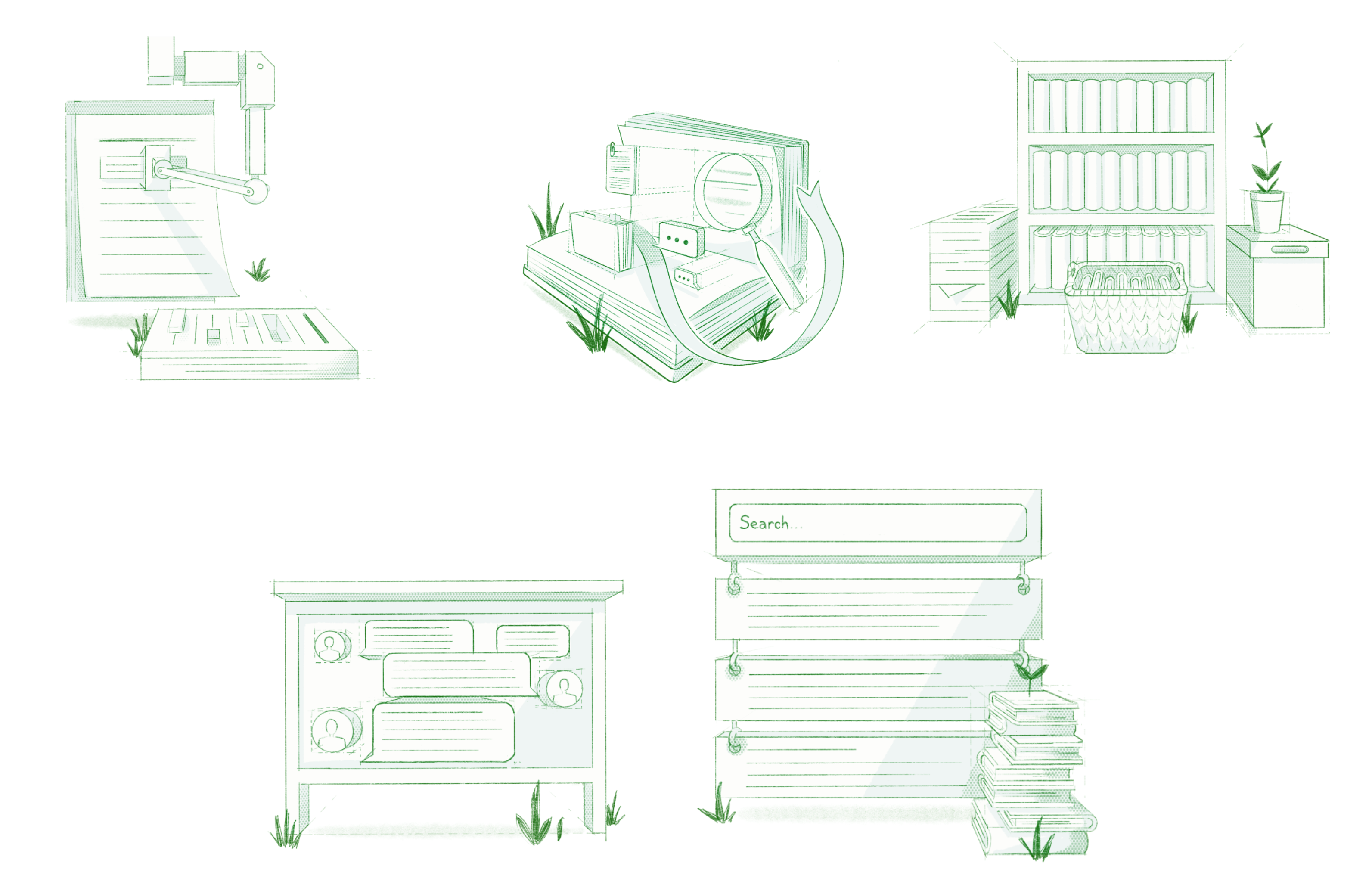 Sketch illustrations – an illustration style specifically for Jasmine which has a steampunk-esque feel to it; gives off the feeling of "bleeding-edge" technology since Jasmine is our AI semantic search engine